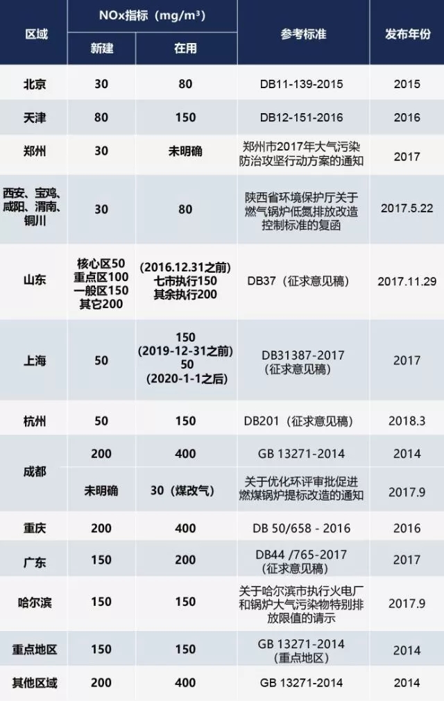 作為PM2.5的重要前體物,氮氧化物成為大氣污染治理的重中之重,為了進(jìn)一步減少氮氧化物排放,改善空氣質(zhì)量,全國(guó)各地區(qū)在滿足國(guó)家標(biāo)準(zhǔn)的同時(shí),還陸續(xù)出臺(tái)更為嚴(yán)格的地方標(biāo)準(zhǔn)。