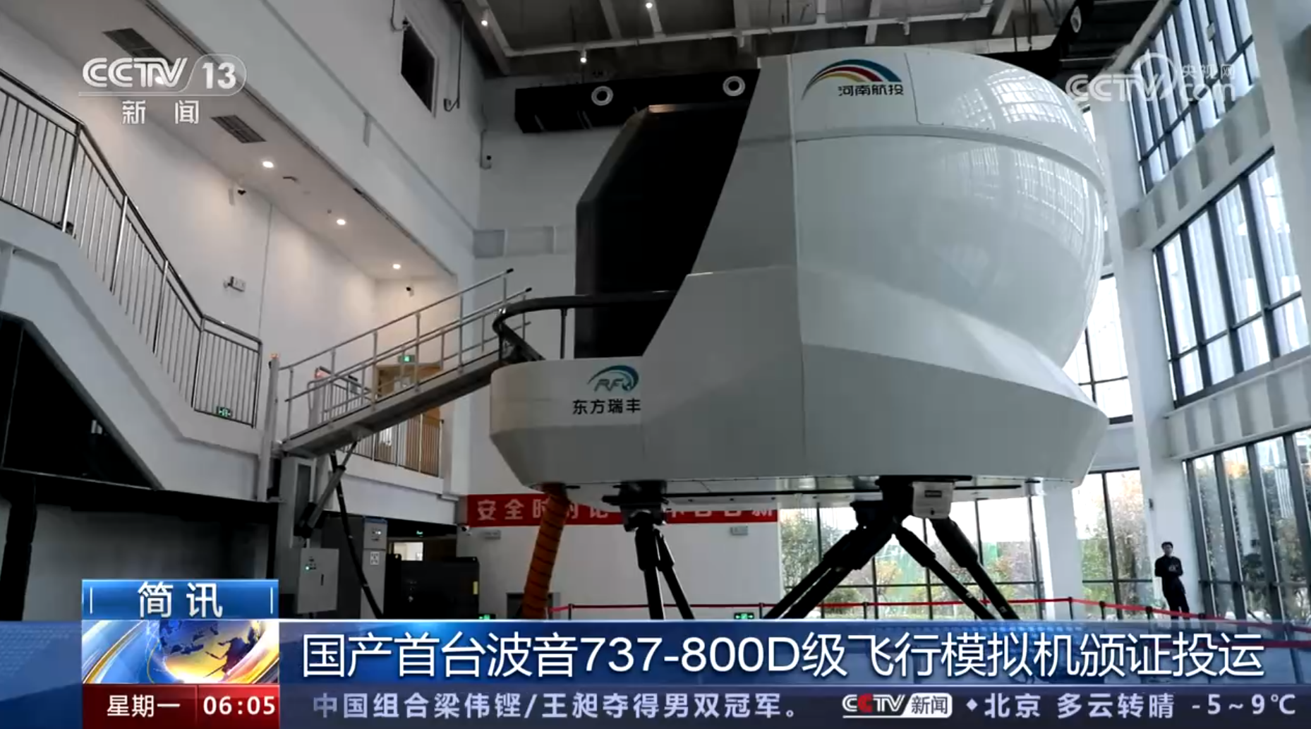 【央視朝聞天下】國(guó)產(chǎn)首臺(tái)波音737-800D級(jí)飛行模擬機(jī)頒證投運(yùn)