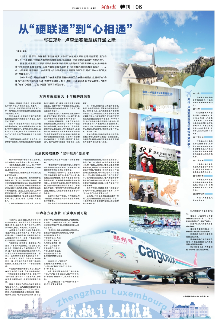 從“硬聯(lián)通”到“心相通”——寫(xiě)在鄭州-盧森堡客運(yùn)航線開(kāi)通之際