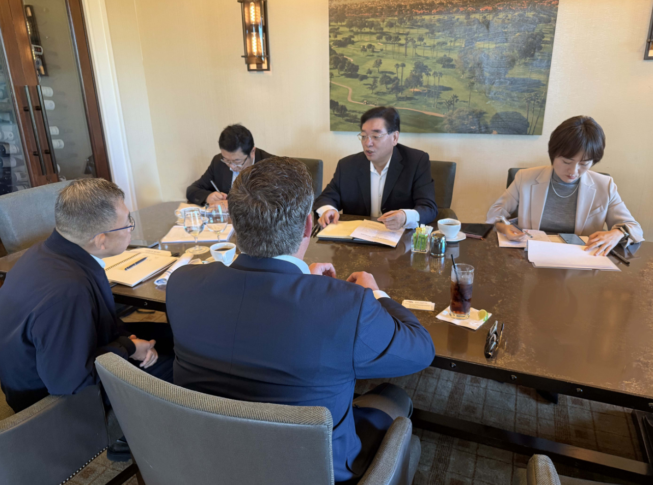 11月22日,代表團一行在洛杉磯與Wallace銷售副總裁Bryan會談,美國康尼航空相關業務負責人一同參加。張明超介紹了中豫航空集團簡況和鄭州機場當前業務布局。他表示,在Wallace的促成下,美國康尼航空今年在鄭貨運量增幅超過50%,與鄭州機場貨量同步達到歷史峰值,物流服務集成商、航空公司、樞紐機場三方資源疊加,實現了優勢互補和共贏發展,希望Wallace和美國康尼航空進一步拓展在鄭業務,加強與中原龍浩航空等本土貨運航空公司的合作,中豫航空集團將一如既往給予支持。Bryan表示,今年5月,Wallace與美國康尼航空開通了鄭州機場首條直飛亞特蘭大/達拉斯的國際定期貨運航線并順利運營至今,為各方發展提供了支持。目前,鄭州機場已經成為美國康尼航空在中國大陸投放運力最多的機場,Wallace希望能繼續與中豫航空集團保持良好的合作關系,并將根據市場需求適時增加在鄭運力。