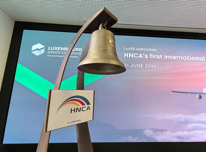 當地時間6月21日上午,中豫航空集團以河南航投為主體發行的3年期人民幣境外債券上市儀式在盧森堡證券交易所舉行。這是中國企業在歐洲發行的首支支持可持續航空燃料(SAF)的綠色債券,也是河南企業發行的首支離岸人民幣綠色債券,鄭盧“空中絲路”資金融通實現新突破。